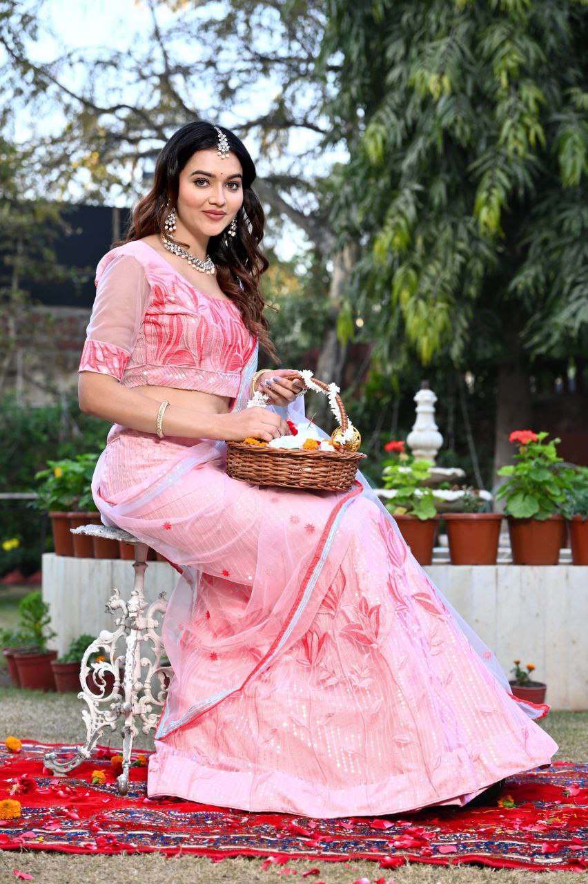 Paired with an unstitched Tussar Silk blouse and a graceful 2.4-meter dupatta featuring matching foil prints, this set is perfect for weddings, festive events, and traditional gatherings. The lightweight micro cotton inner ensures comfort all day long, while the complete package delivers both elegance and ease.